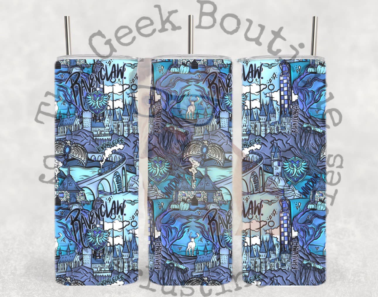 Blue Wizard Raven House Doodle Magical Book Movie Tumbler