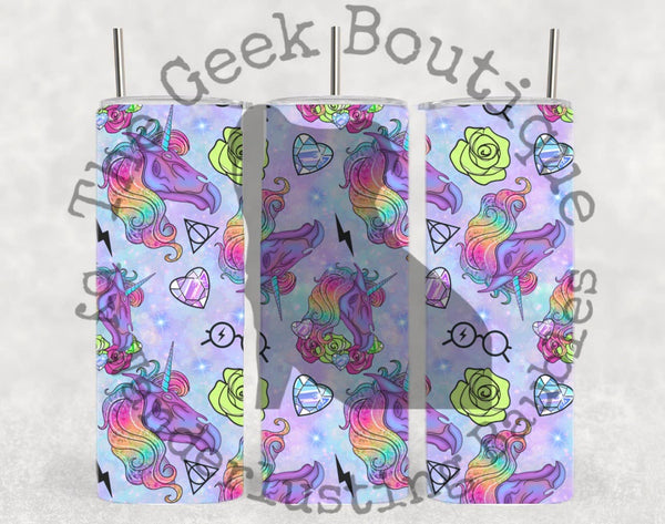 Bright Unicorn Thestral Magic Wizard Collage Bookish Tumbler