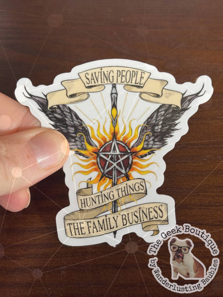 Vinyl sticker, waterproof, supernatural, SPN, saving people, hunting things, brothers, nerd, geek, the geek boutique, anti possession symbol, family business, monster hunters, brothers, tv show