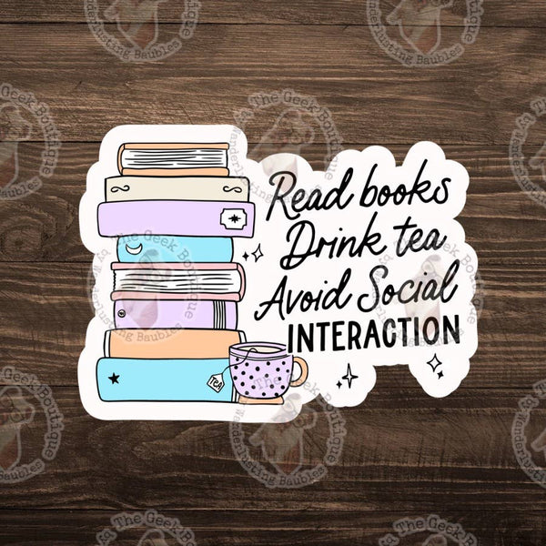 3" Vinyl Read Books Drink Tea Introvert AntiSocial Sticker