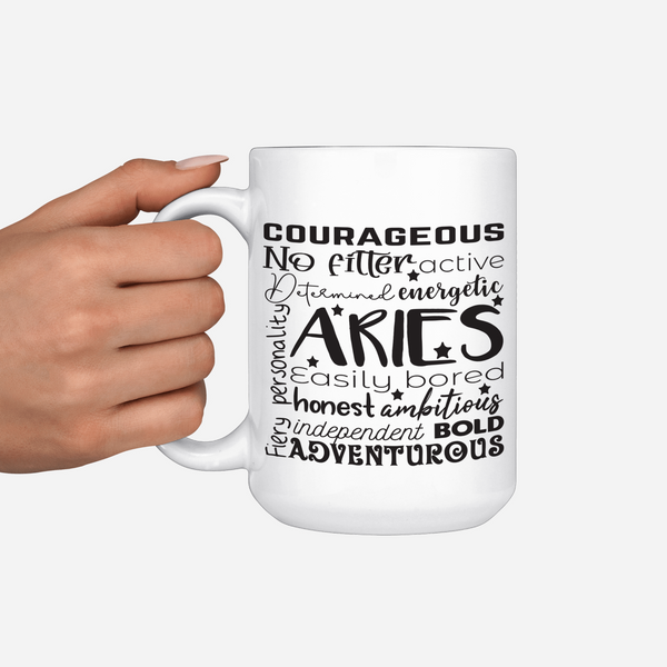 Aries Zodiac Word Collage - Ceramic Mug - 15 Oz