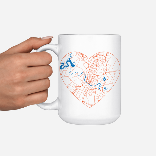 Austin Texas Map Heart Ceramic Mug - 15oz