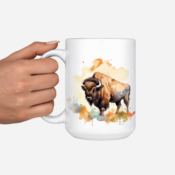 Bison Buffalo Watercolor Looking Left Ceramic Mug - 15oz