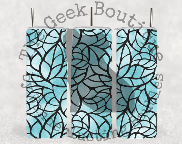 Blue Abstract Web Leaves Flowers Wave Modern Art Tumbler