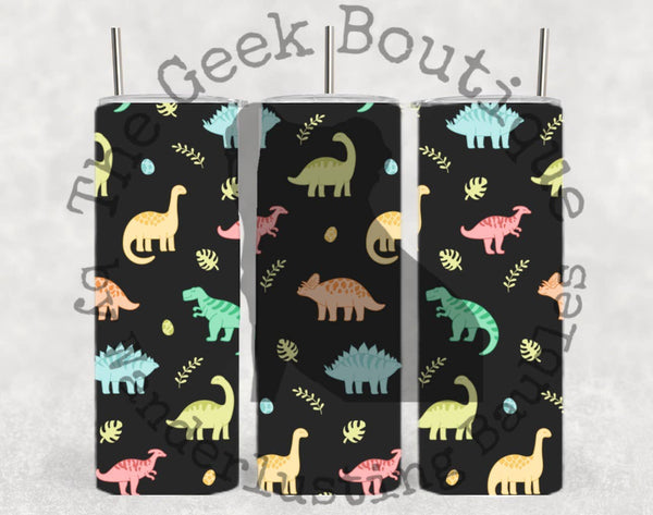 Bright Dinosaurs Black Collage Kids Fun Toys Tumbler