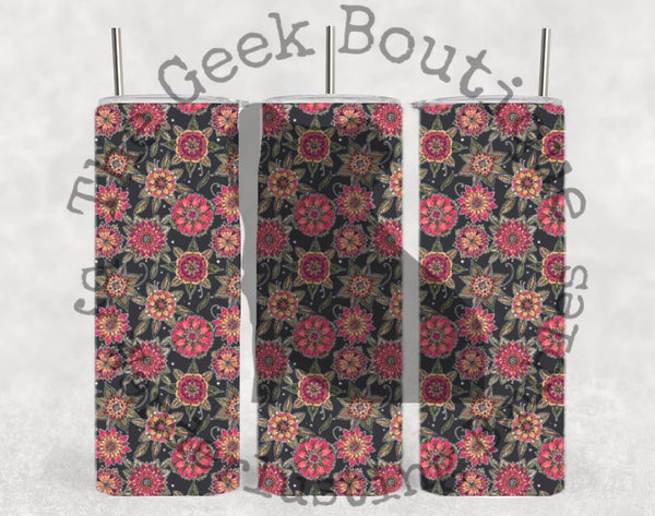 Geometric Floral Pattern Flowers Orange Pink Black Tumbler
