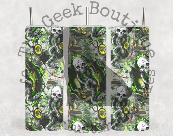 Gray Wizard Dark Magic Symbol Collage Book Movie Tumbler