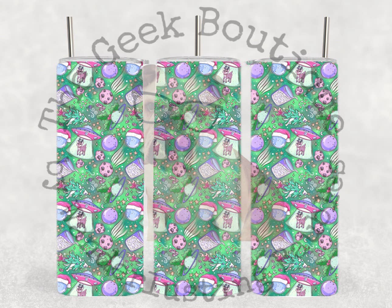 Green Christmas UFO Santa Reindeer Holiday Rudolph Tumbler