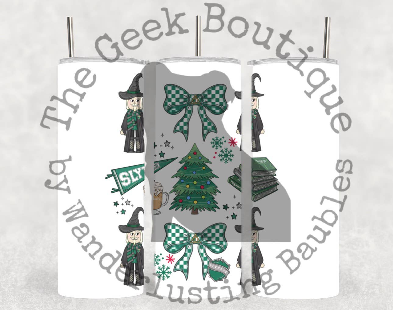 Green House Nutcracker Magical Wizard Holiday Book Tumbler