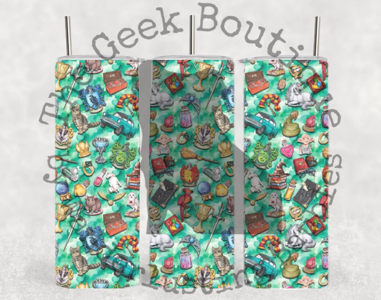 Green Magical House Watercolor Wizard Bookish Tumbler