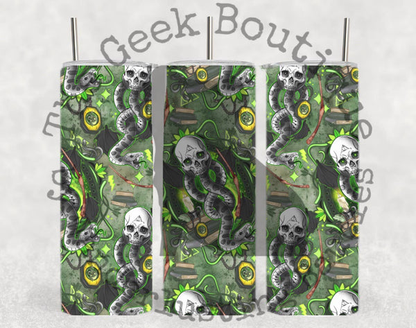 Green Wizard Dark Magic Symbol Collage Book Movie Tumbler