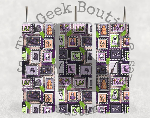 Halloween Spooky October Stamps Cute Pumpkins Ghost Tumbler