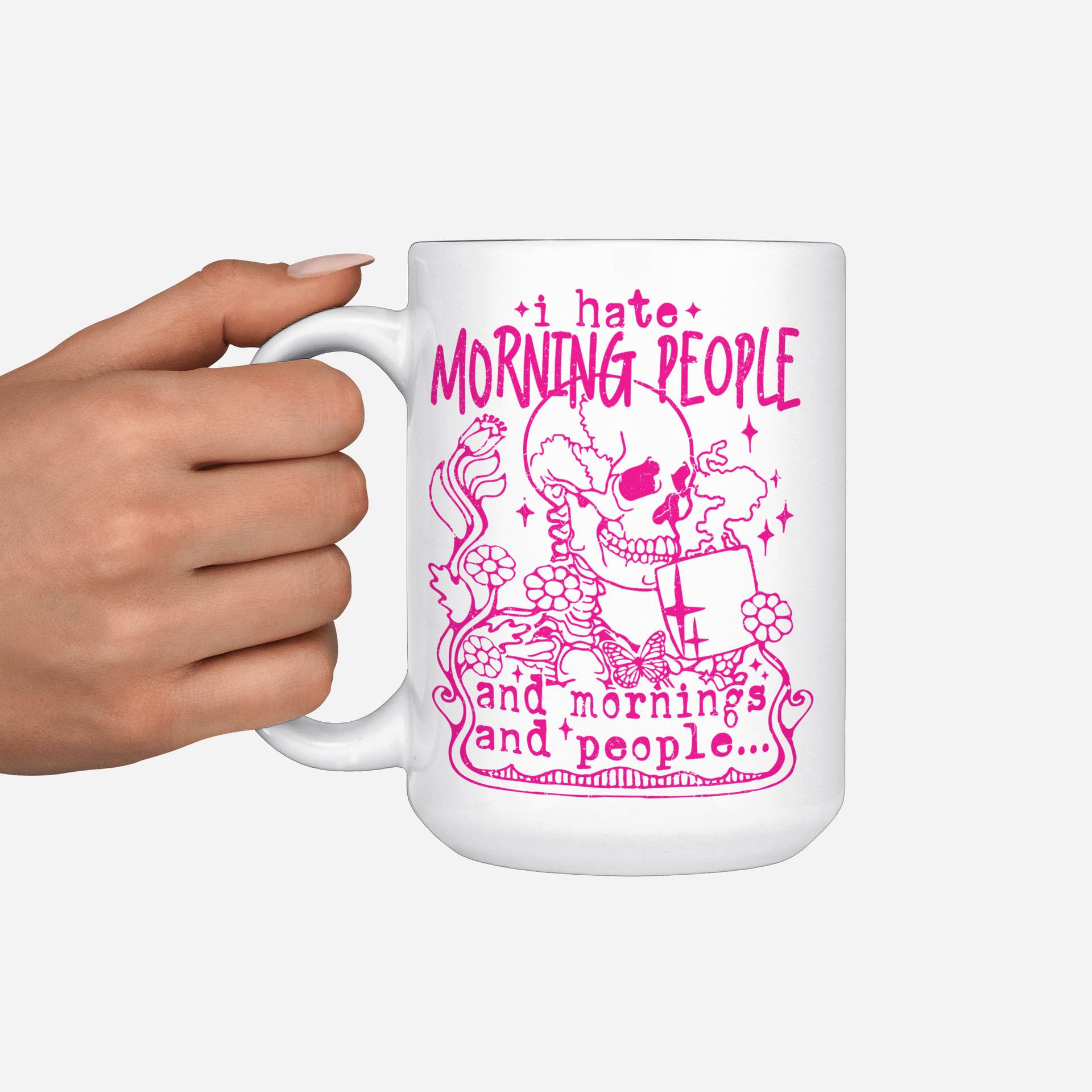 I Hate Morning People - Pink - Snarky Ceramic Mug 15 Oz