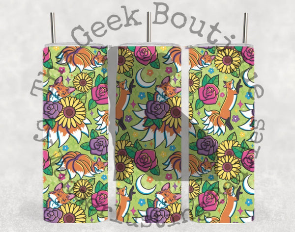 Kitsune Fox Ninetails Anime Bright Cute Flowers Tumbler