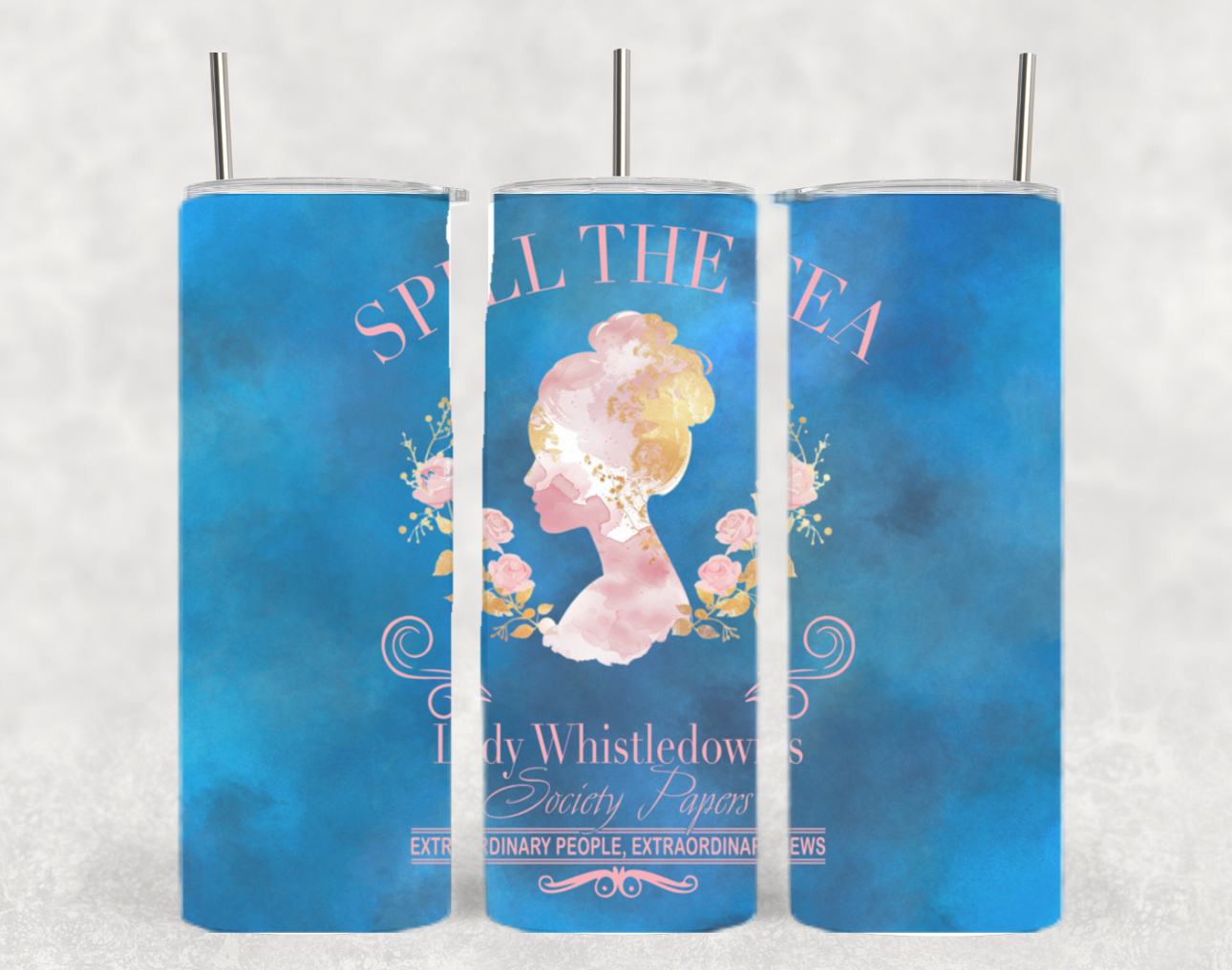 Lady Whistledown Pink/Blue Bridgerton Romance Book Tumbler
