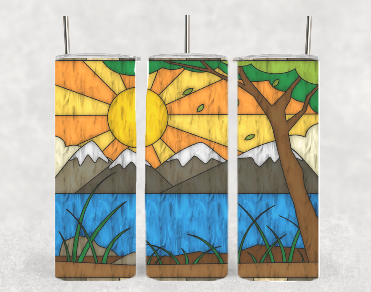 Lake Mountain Tree Summer Sun Nature Stained Glass Tumbler