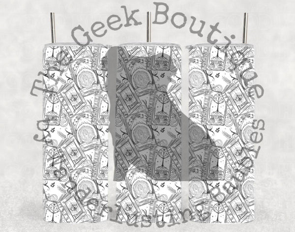 LOTR Bookish Adventure Reader BW Sketch Small Print Tumbler
