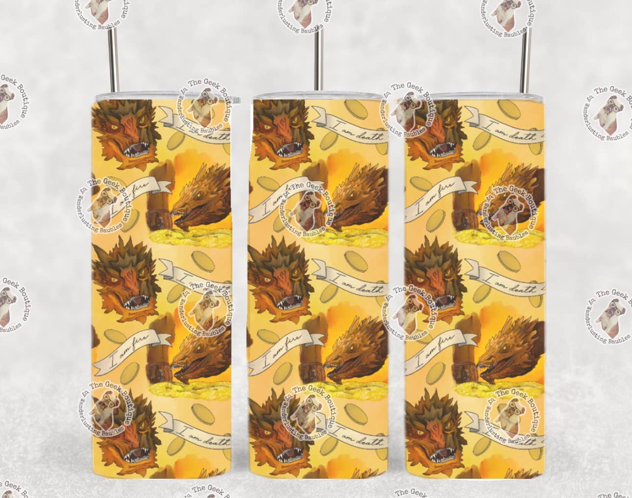 LOTR Dragon Smaug Fire Death Yellow Book Tumbler