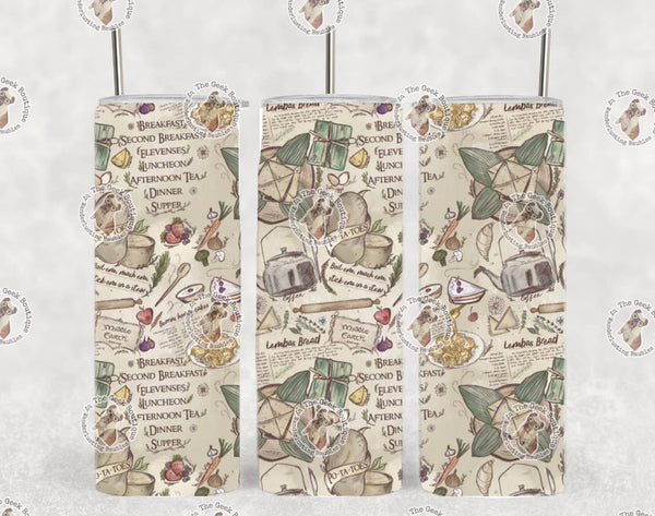 LOTR Hobbit Shire Food Recipes Adventure Book Tumbler