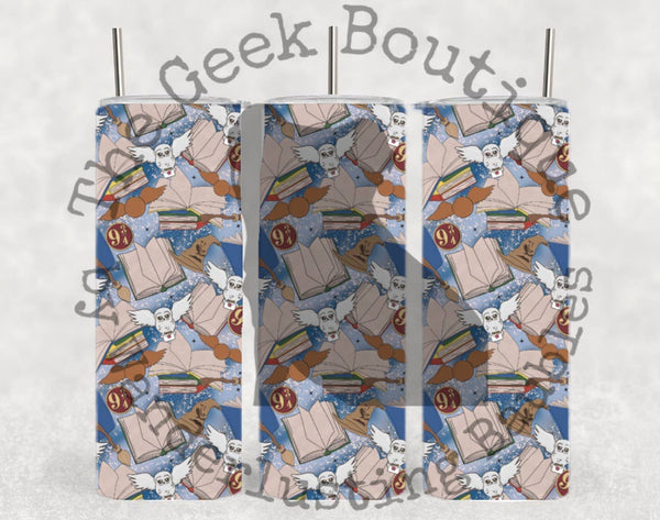 Magical Book Owl Hat Collage Book Novel Wizard Tumbler