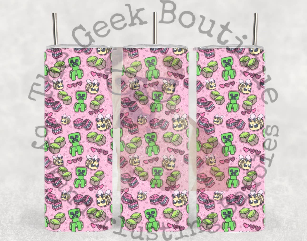 Mine Video Game Craft Block Valentine's Day Kids Fun Tumbler