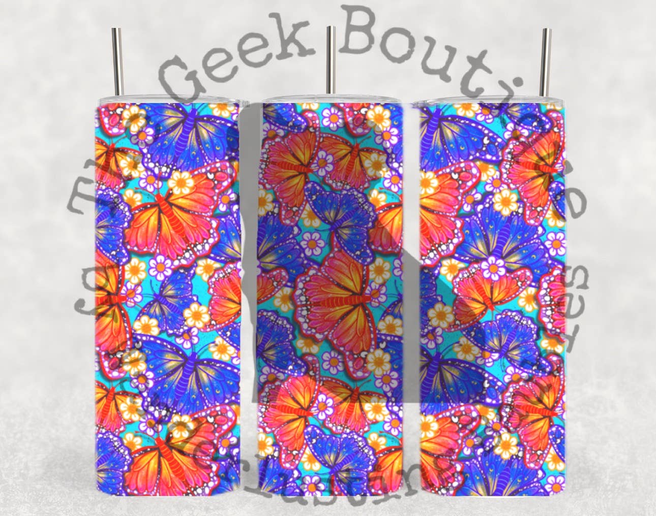 Neon Butterflies Flowers Bright Summer Insect Tumbler