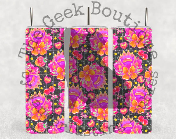 Neon Kitty Paw Toe Beans Flowers Cute Animal Groovy Tumbler