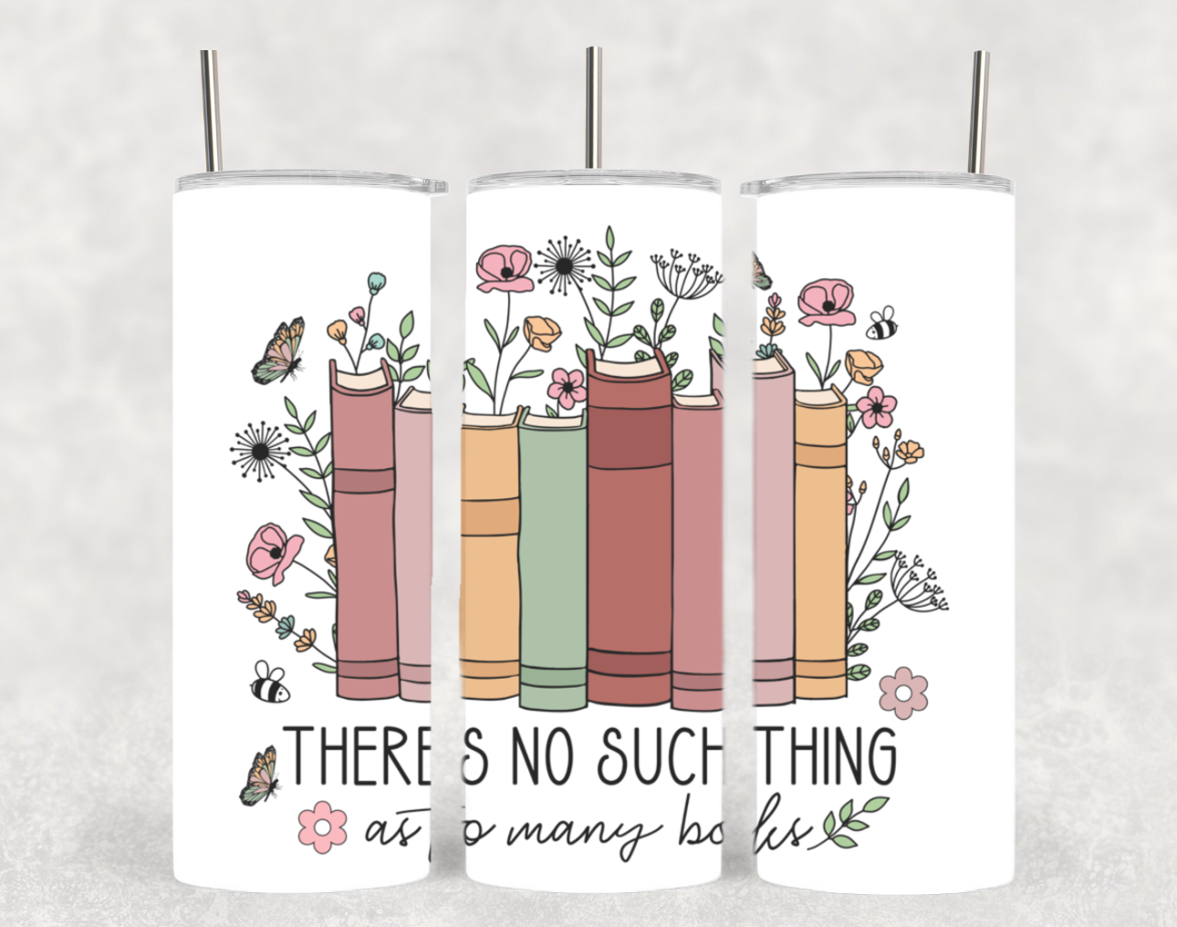 No Such Thing As Too Many Books Pastel Floral Spring Tumbler
