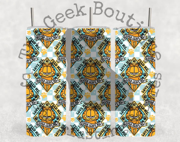 Orange Cat Cartoon TV Retro Feed Me Love Me Tumbler