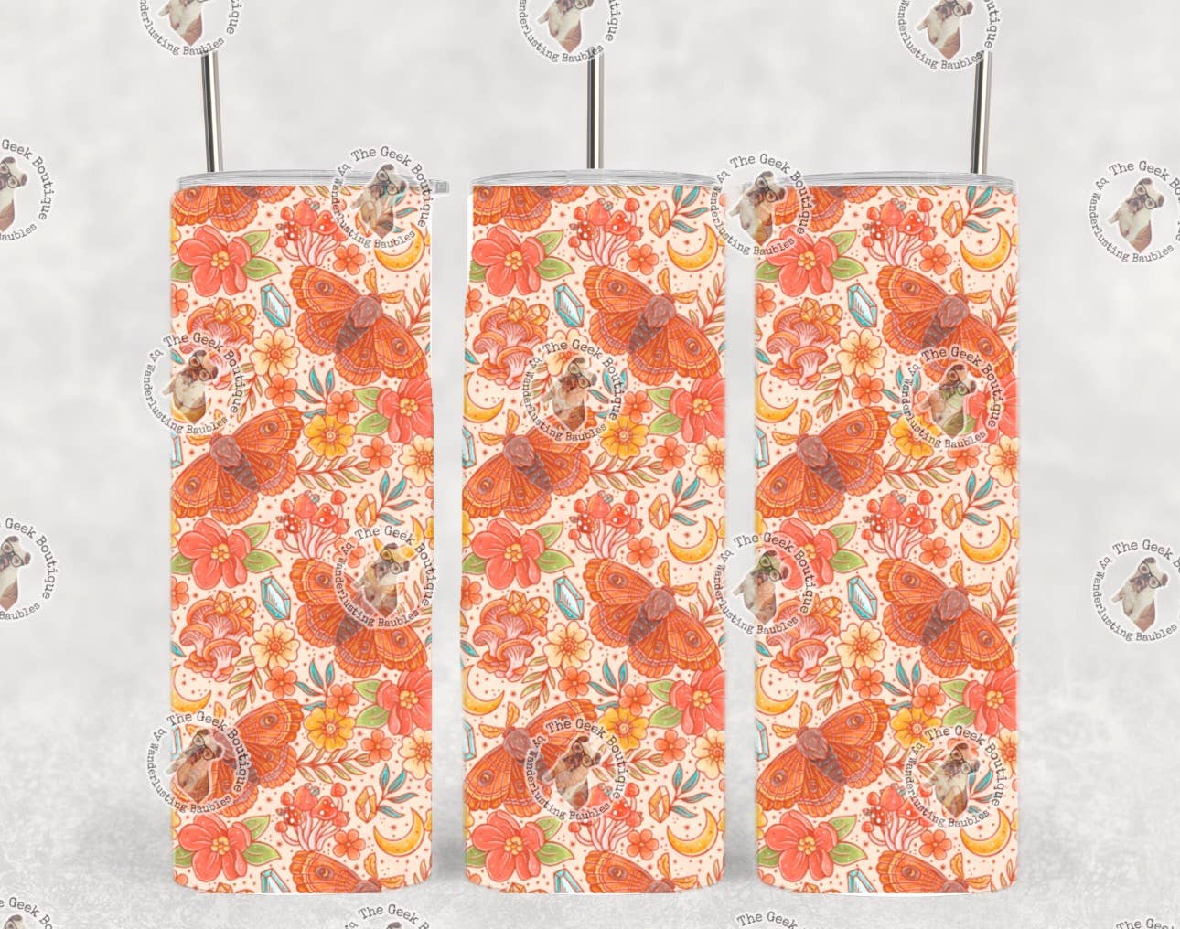 Orange Floral Moths Crystals Flowers Insect Bug Tumbler