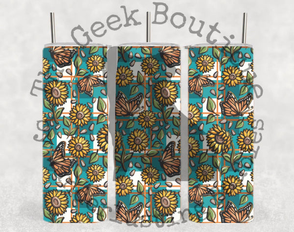 Picnic Sunflowers Monarch Butterfly Summer Floral Tumbler