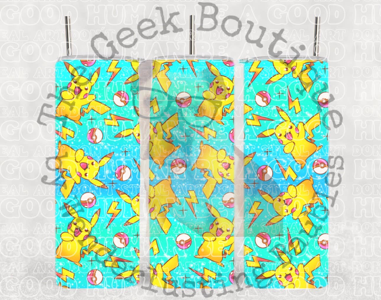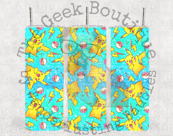Pika Poke Ball Teal Collage Video Game Cartoon Anime Tumbler