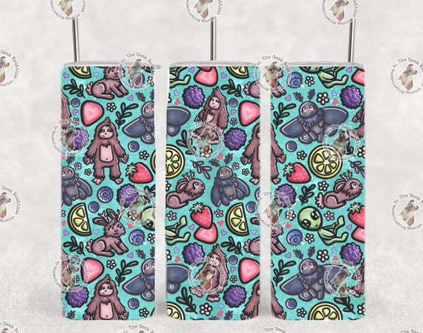 Teal Fruity Cryptids Cute Summer Bigfoot Mothman Tumbler