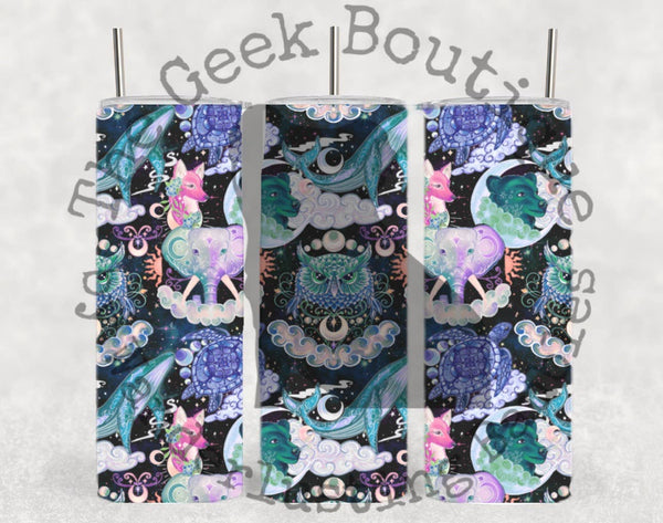 Celestial Animal Collage Whale Bear Turtle Fox Owl Tumbler