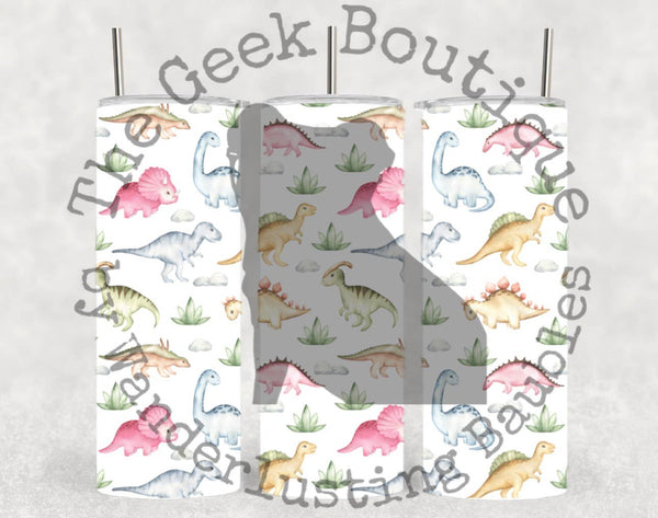 Cute Watercolor Dinosaurs White Animal Simple Kids Tumbler