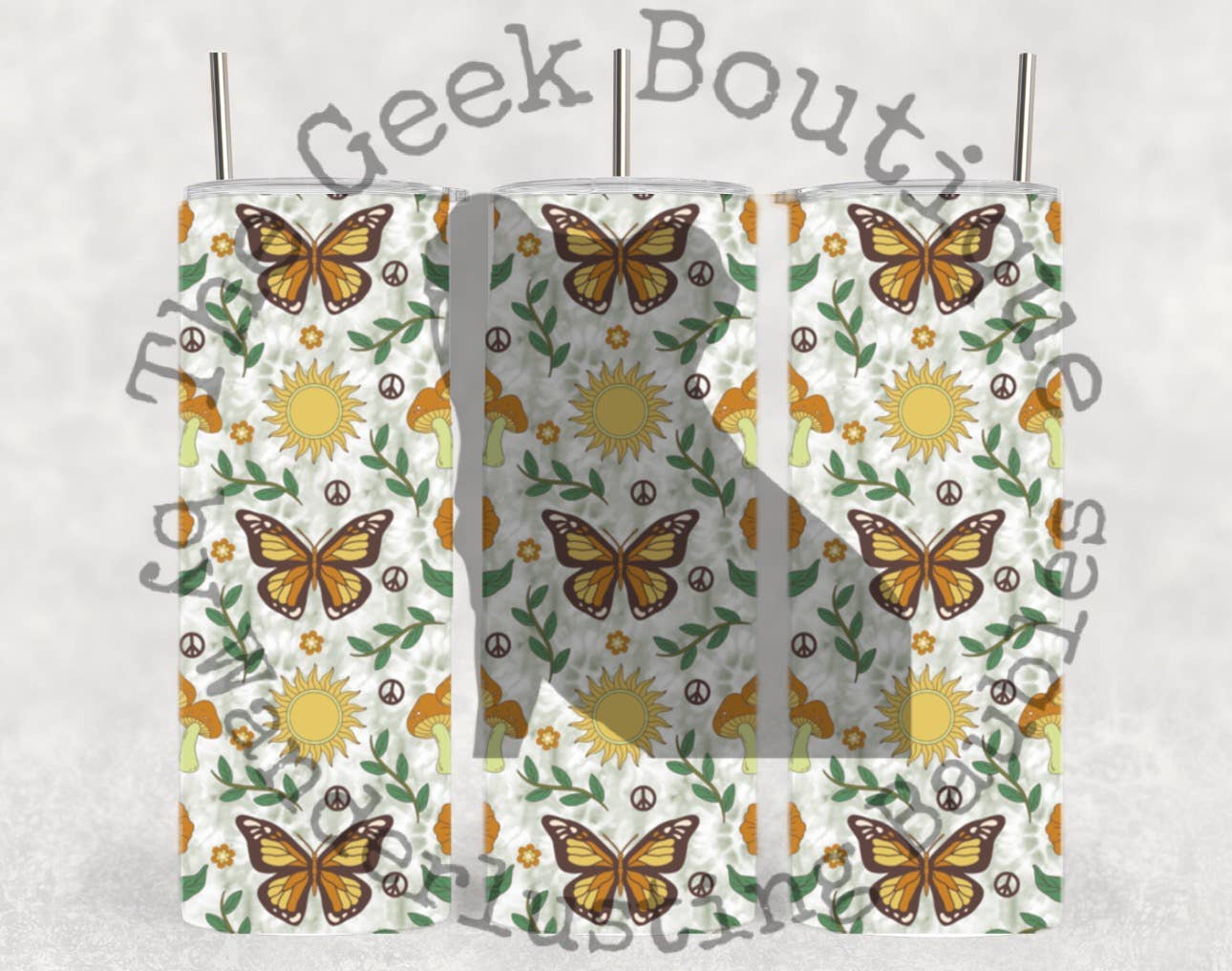 Monarch Butterfly Sun Mushroom Nature Flowers Plant Tumbler