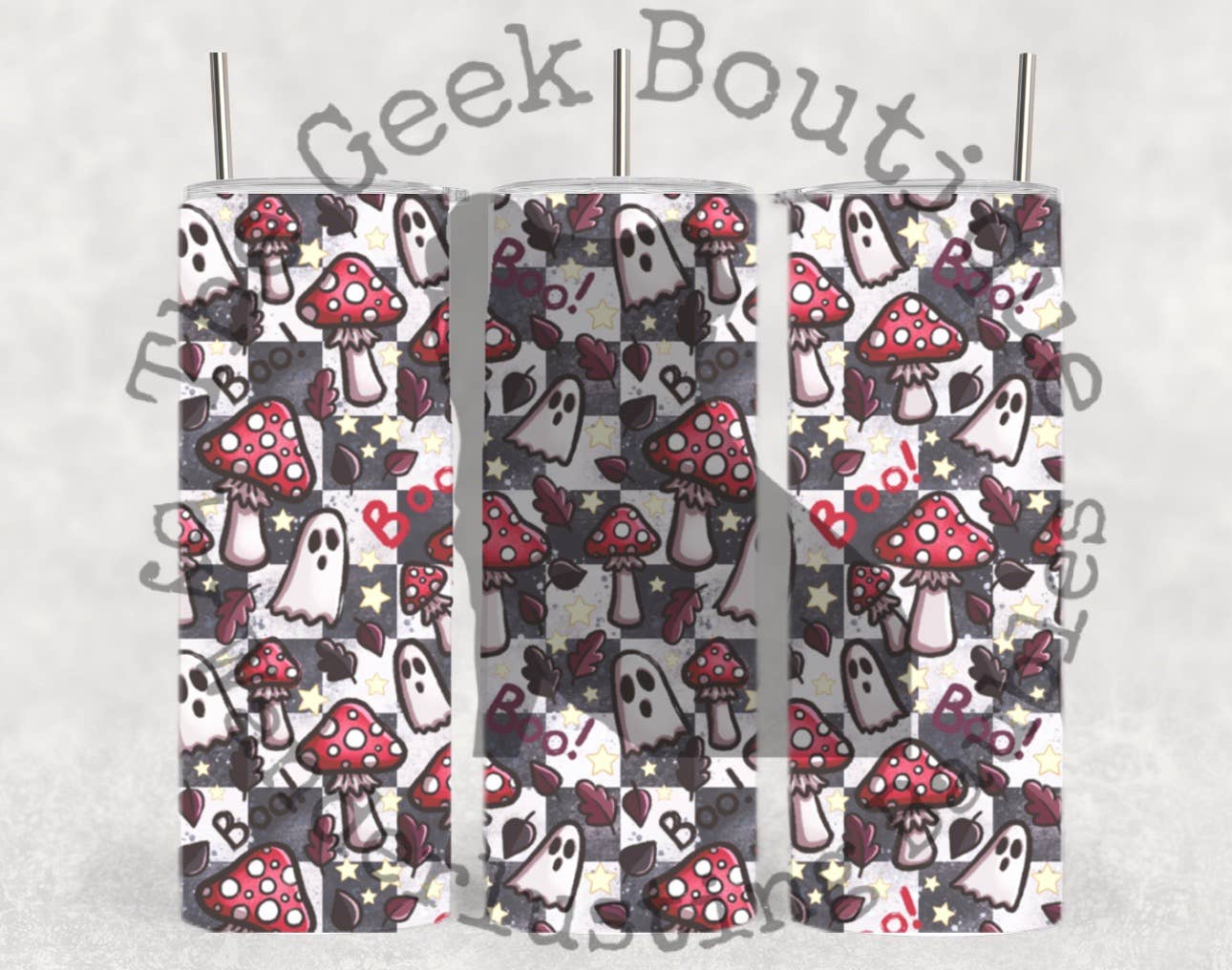 Ghosts & Mushrooms Spooky Cute Plants Boo Checker Tumbler