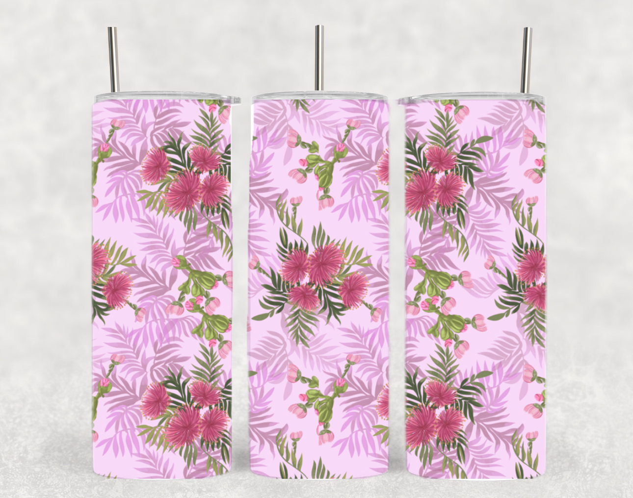 Pink Floral Flower Tropical Palm Plant Botanical Tumbler