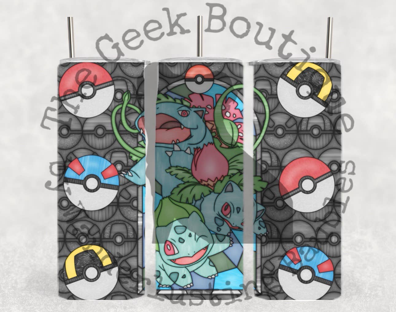 Green Bulba Poke anime Cartoon Stained Glass Tumbler