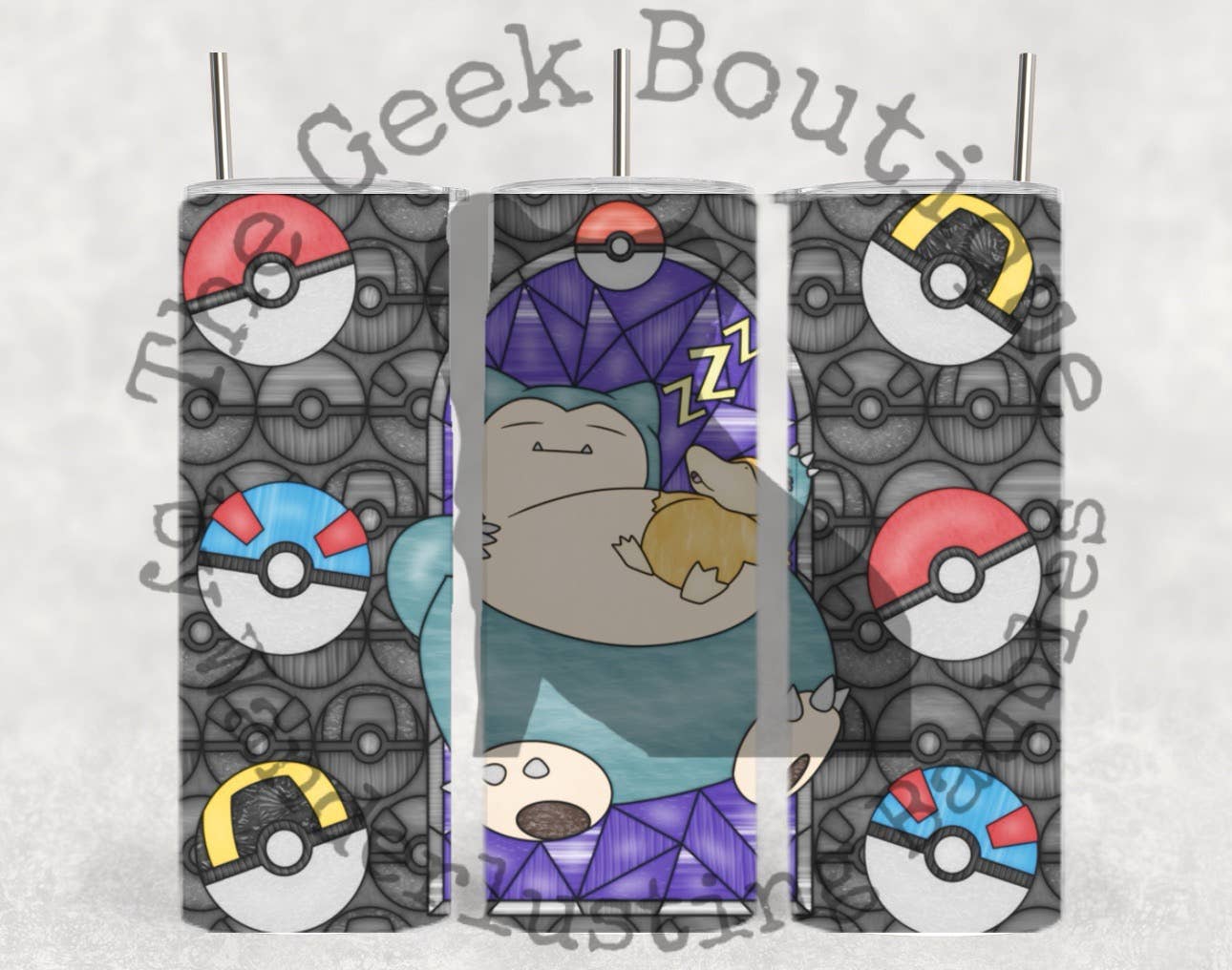 Snorlax Psyduck Stained Glass Poke anime Cartoon Tumbler