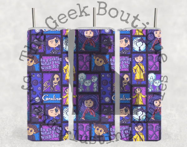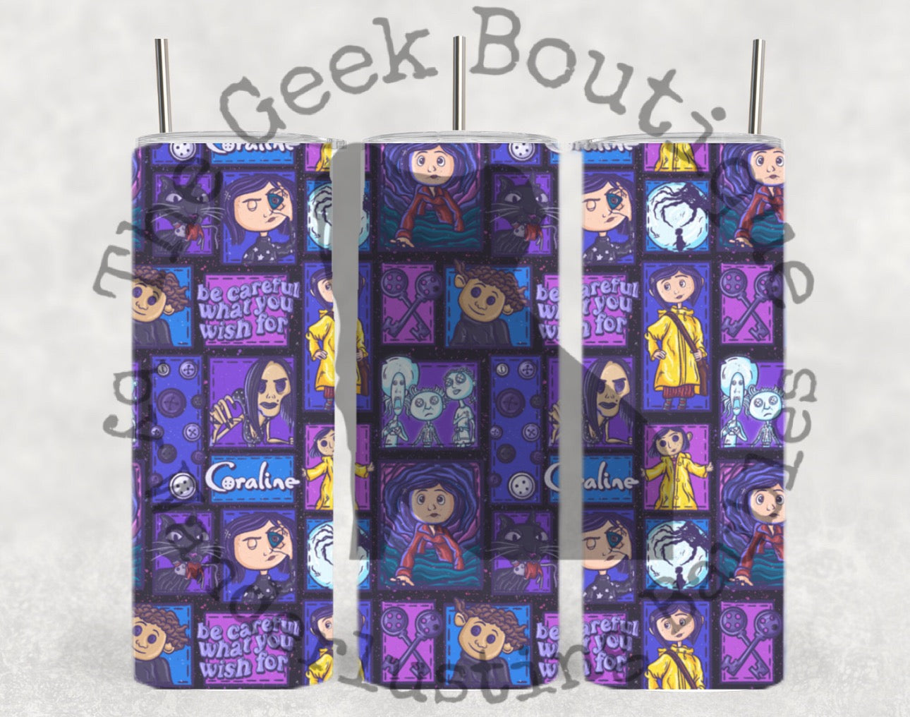 Coraline Patchwork Movie Halloween Spooky Cartoon Tumbler