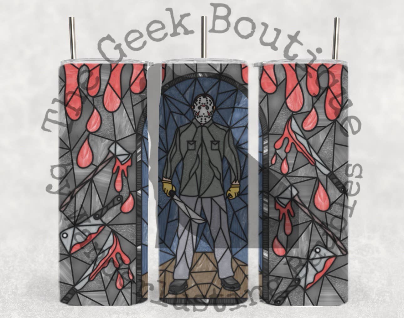 Jason Classic Movie Horror Halloween Stained Glass Tumbler