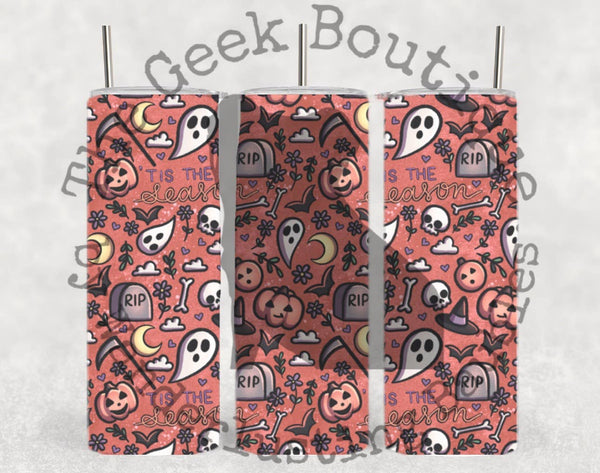 Tis the Season Orange Halloween Horror Collage Tumbler