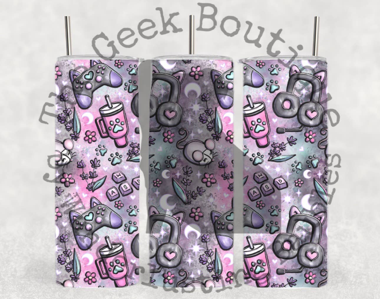 Pink Cat Kawaii Cute Gamer Video Game Geeky Tumbler