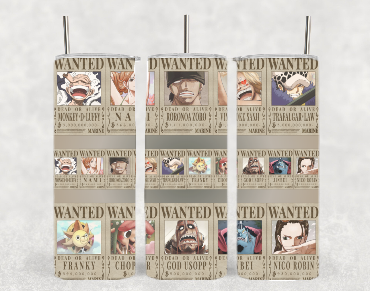 One Piece Pirate Wanted Poster Collage Anime Manga Tumbler