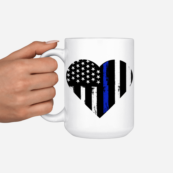 Blue Line Flag Heart PoliceCeramic Mug - 15oz