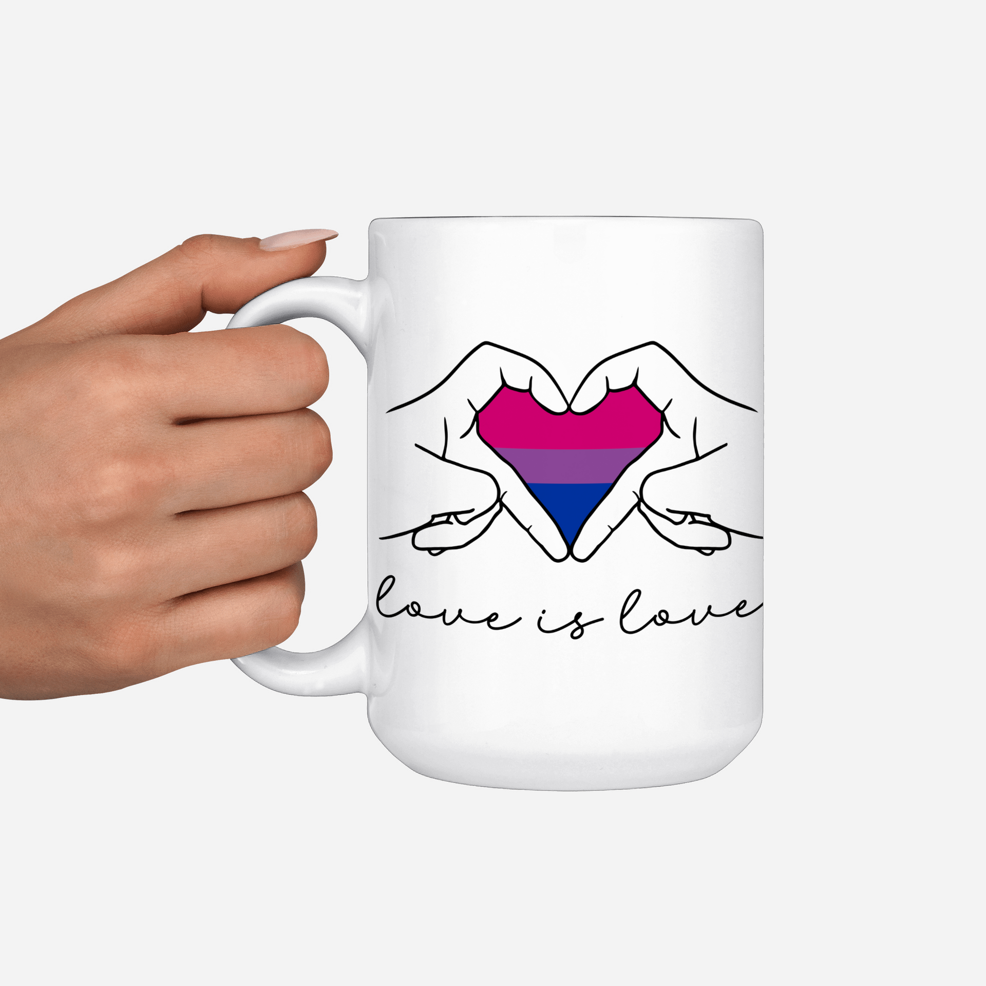 Bisexual Love is Love Heart Hands Pride Ceramic Mug - 15oz