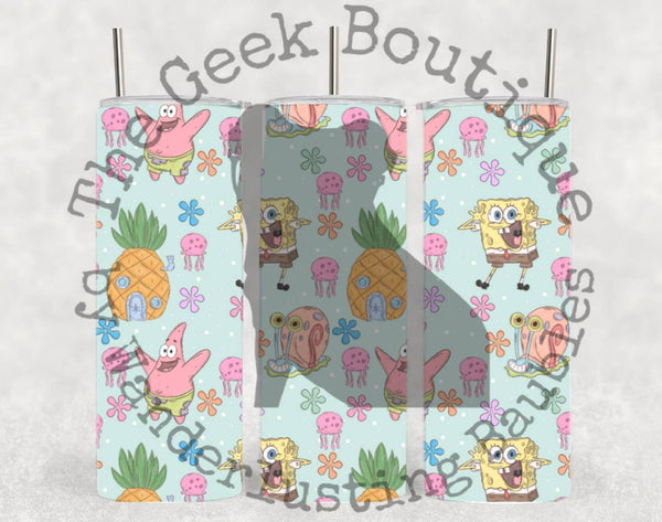 Sponge Starfish Pineapple Collage Sea Cartoon Kids Tumbler