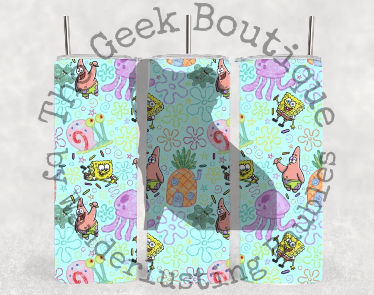 Sponge Starfish Pineapple Sea Life Cartoon Kids Tumbler