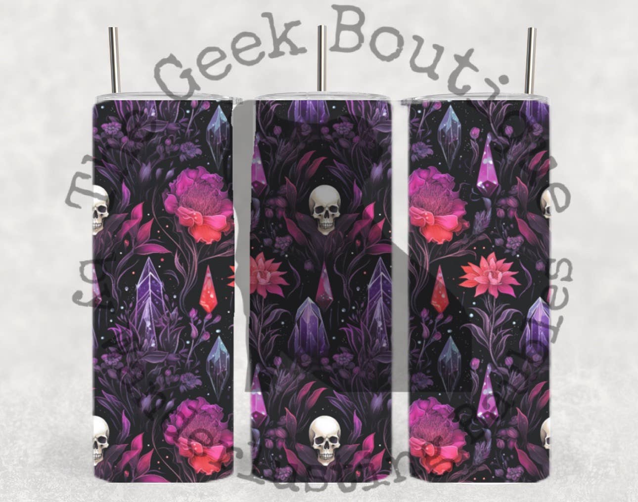 Crystal Mystic Skull Floral Black Pink Witchy Tumbler